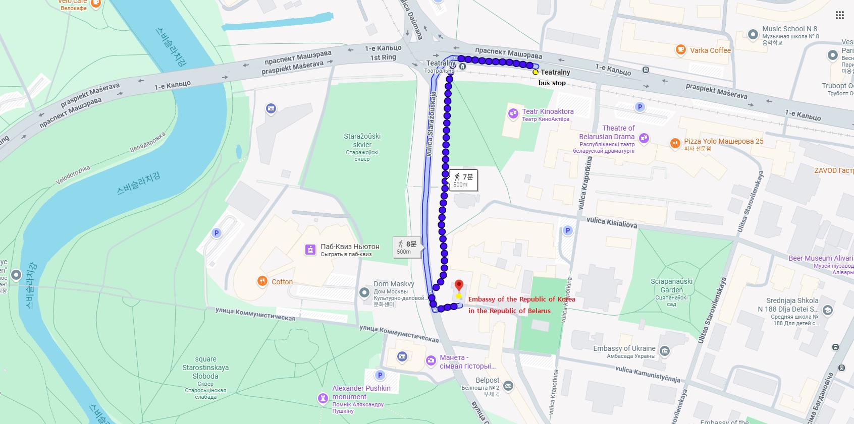 - 긴급전화 : +375-29-369-1320 (야간 및 공휴일 당직전화)